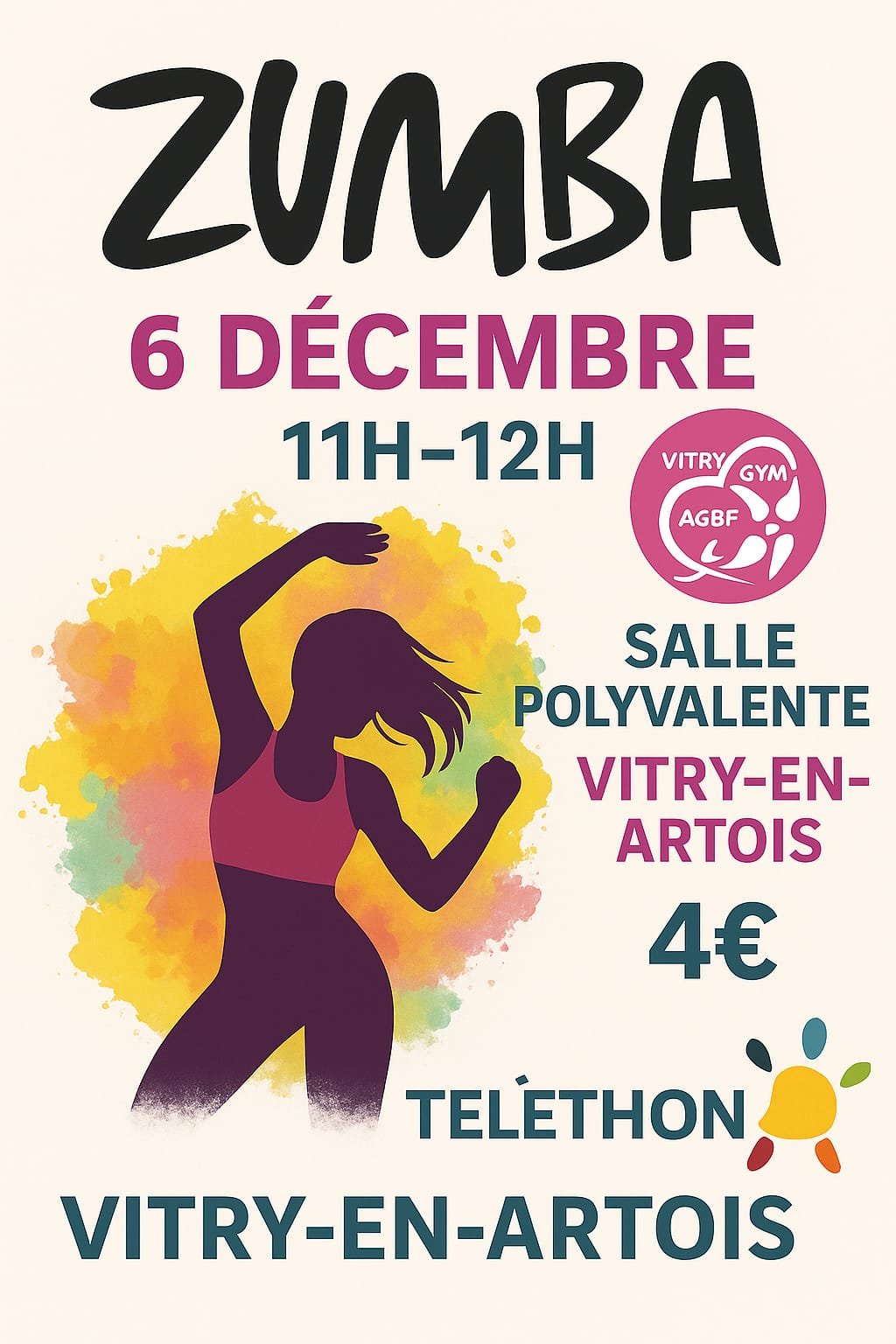 VITRY EN ARTOIS: cours de zumba samedi à 11h au prix de 4 € pour le téléthon.