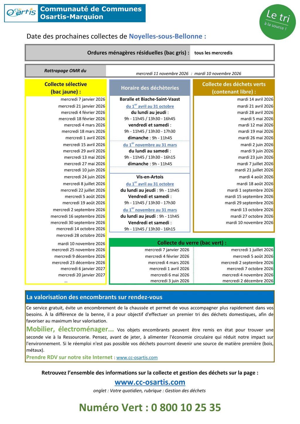 CALENDRIER DE COLLECTE DES DECHETS 2026
