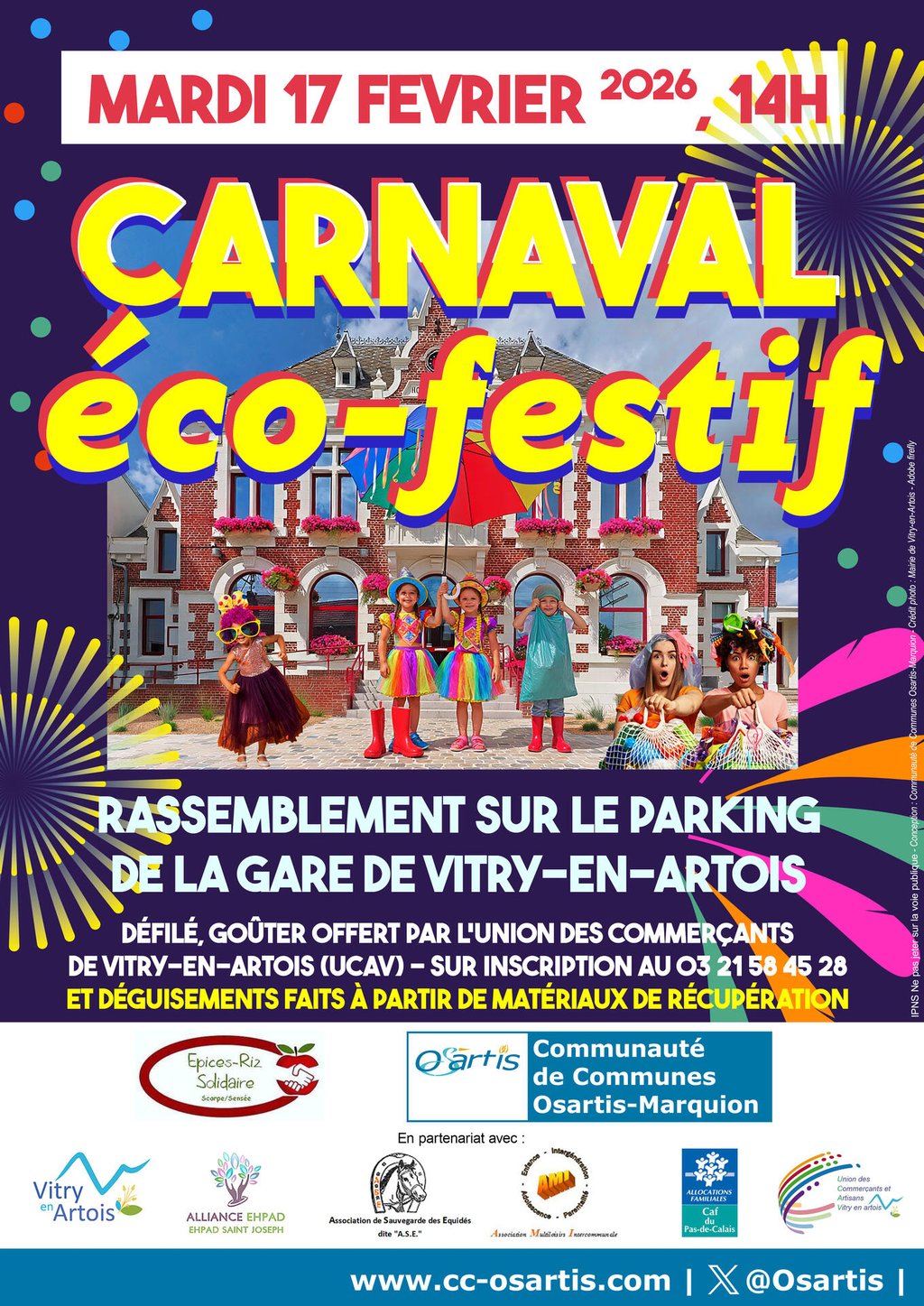 Le 17 février, le service gestion des déchets de la Communauté de Communes Osartis-Marquion avec M. Campbell, Vice-Président délégué à la Gestion des déchets, l’environnement et le développement rural, ont organisé un carnaval, dans les rues de Vitry en Artois, basé sur le thème du recyclage