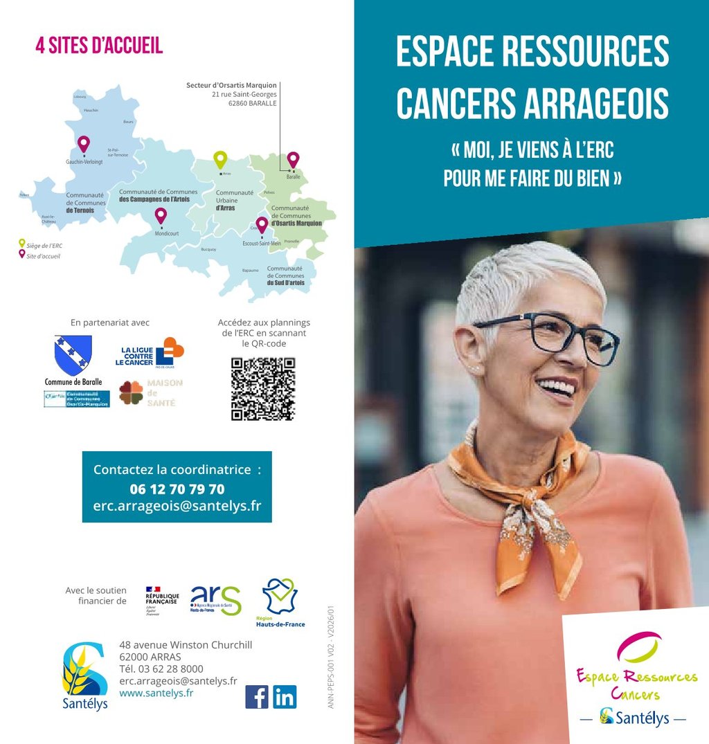 Vous trouverez ci-après le lien vers l’ensemble des informations de présentation de ces nouvelles permanences sur le territoire communautaire : https://www.cc-osartis.com/actualite/290/2-l-espace-ressources-cancers-erc-de-l-arrageois-s-implante-a-la-maison-de-sante-pluriprofessionnelle-de-baralle.htm