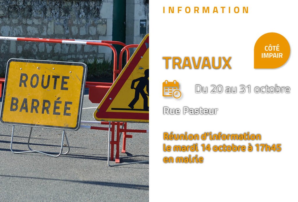 Des travaux de réfection auront lieu du lundi 20 au vendredi 31 octobre 2025 rue Pasteur.